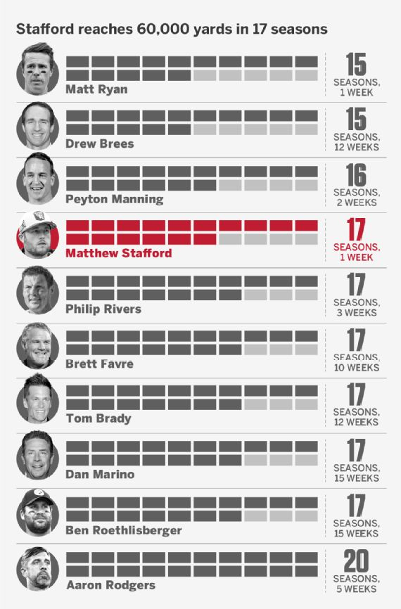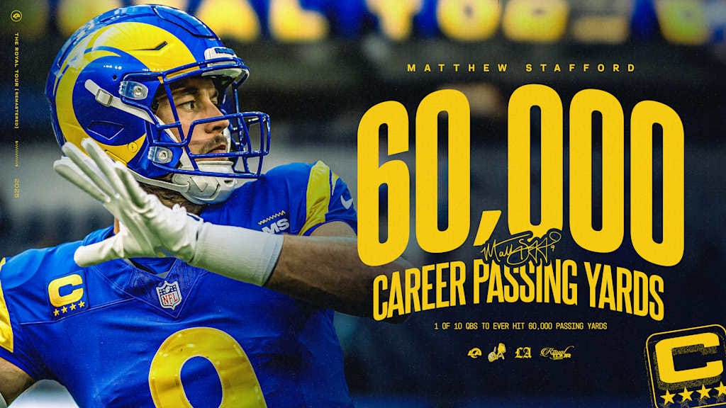Rams quarterback Matthew Stafford crossed one of football’s biggest milestones: 60,000 career passing yards.