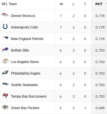 Biggest news: Last week, the Colts and Packers led the NFL with only one loss each.