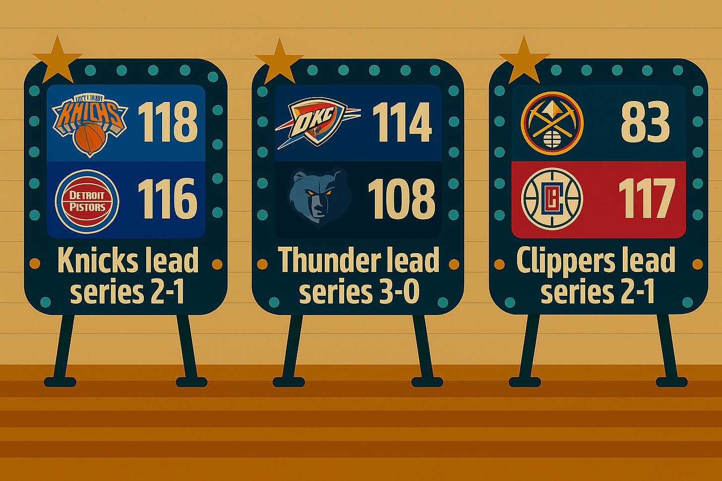 Remember, we expected the Thunder to beat the Grizzlies (~80% chance), Clippers to beat the Nuggets (~65%), and Knicks to beat the Pistons (~55%). Let's see the scoreboard!