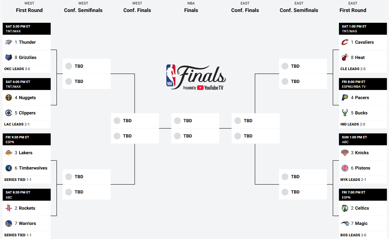 Now let’s zoom out and look at the overall playoff bracket. Remember, the team in each series that wins 4 games wins the series and moves to the next round.