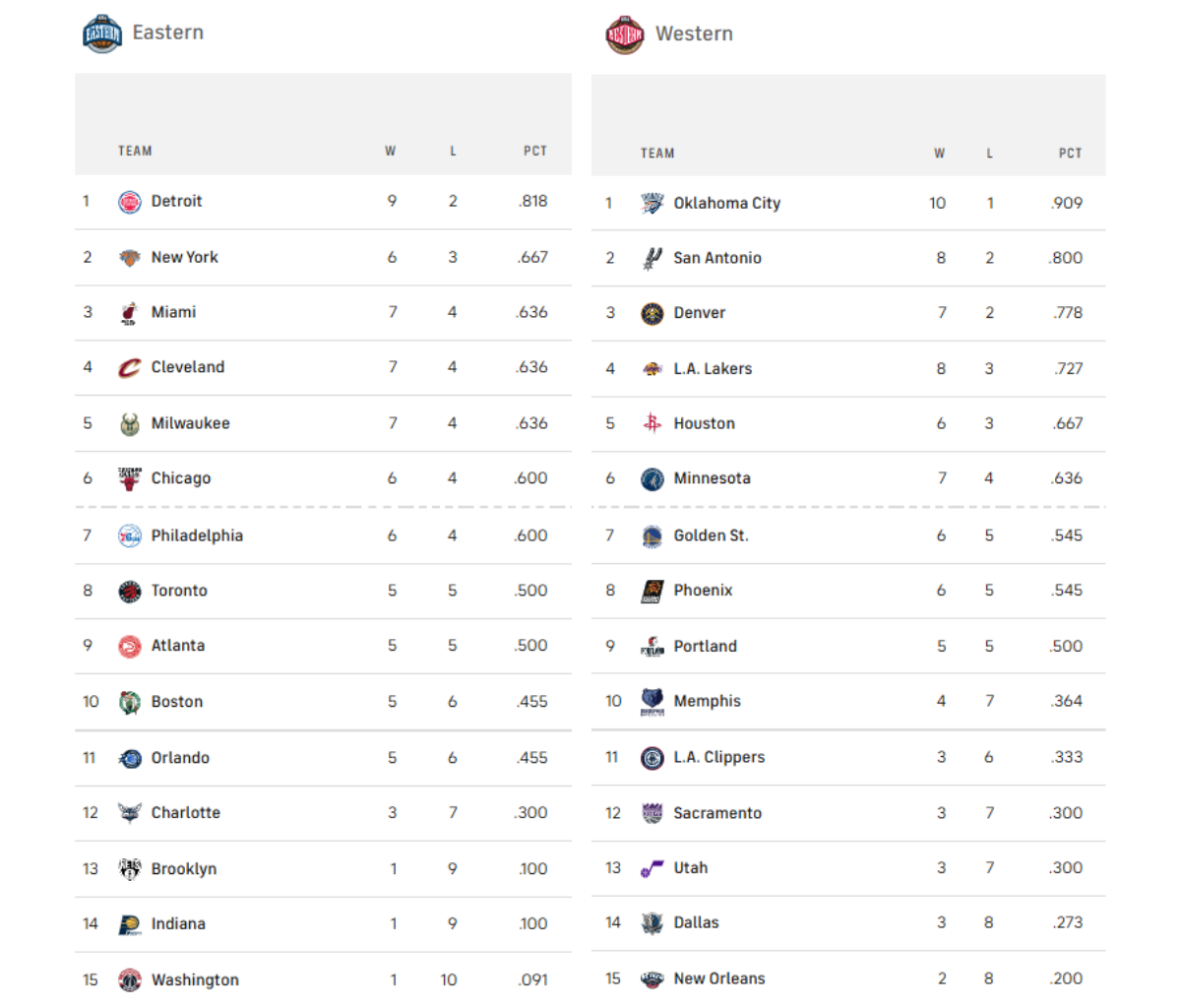 Biggest news: Weāre a few weeks into the season, so letās zoom out and look at the standings.