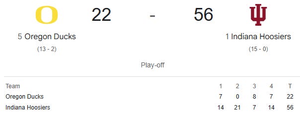 Indiana over Alabama in an even bigger blowout, 38-3.